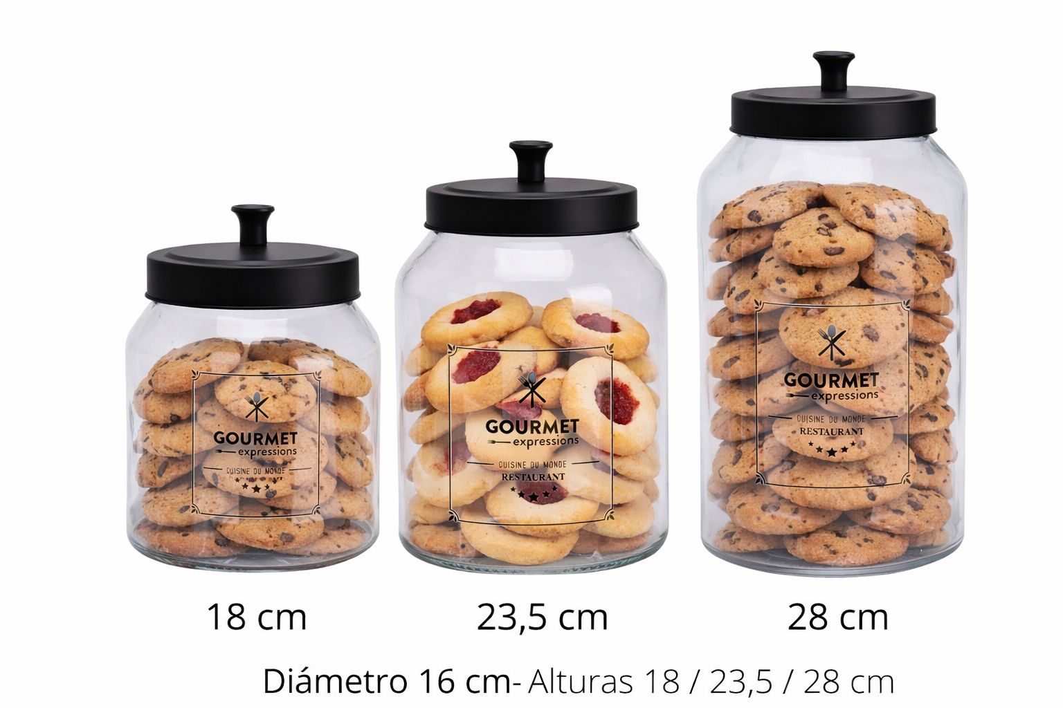 Base 16 cm, altura 18.5,23,5 y 28