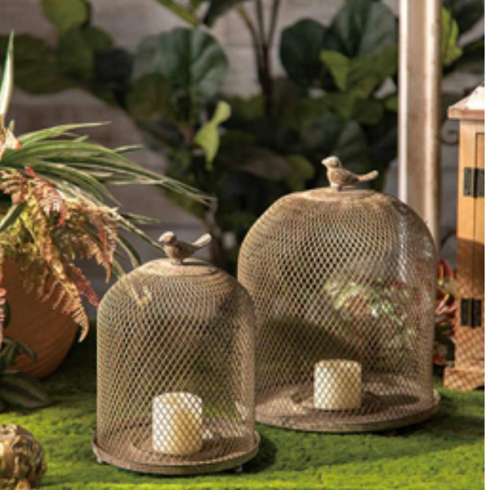 base entera de chapa, cúpula de chapa calada, con pajarito}