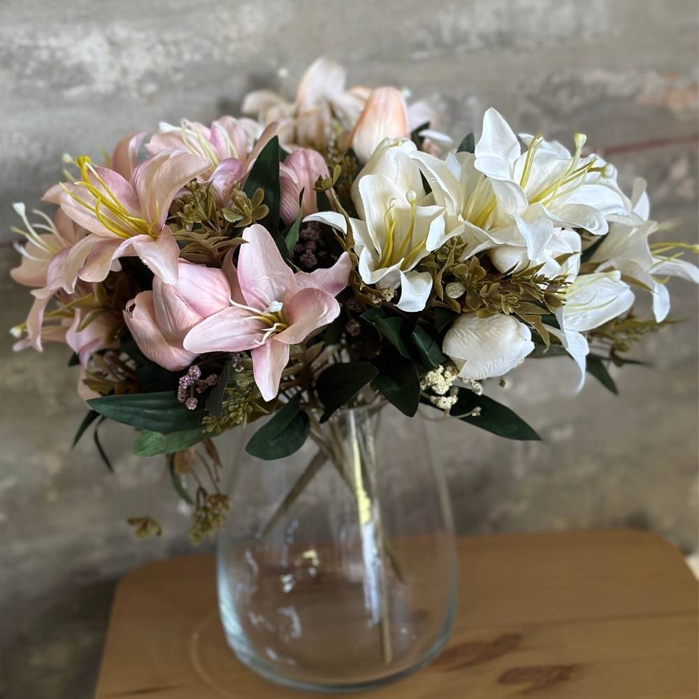 disponible en tres colores (nude, blanco y rosa) con follaje verde